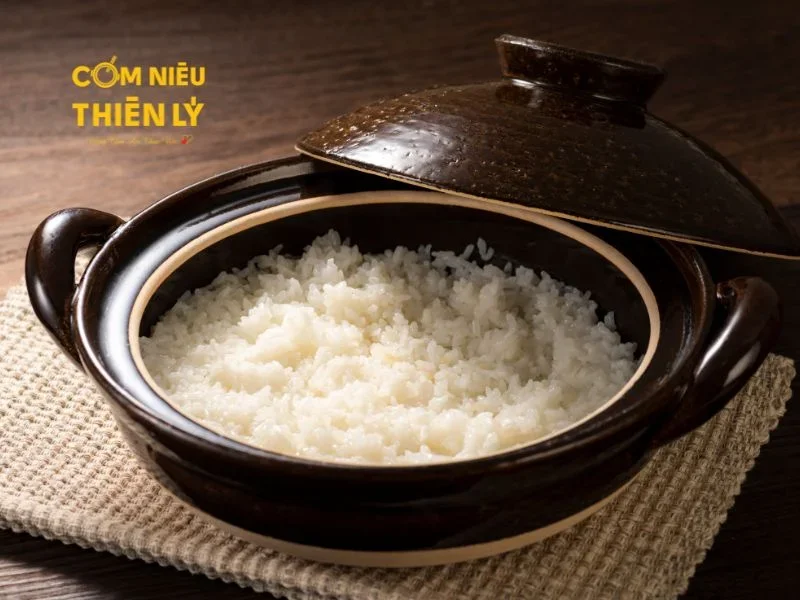 The process of making Com Nieu involves cooking rice in a clay pot until it develops a crispy, golden bottom. This crispy rice, known as 'cơm cháy', is highly prized for its texture and taste. The pot imparts a unique, earthy flavor to the rice, distinguishing it from the typical steamed varieties.