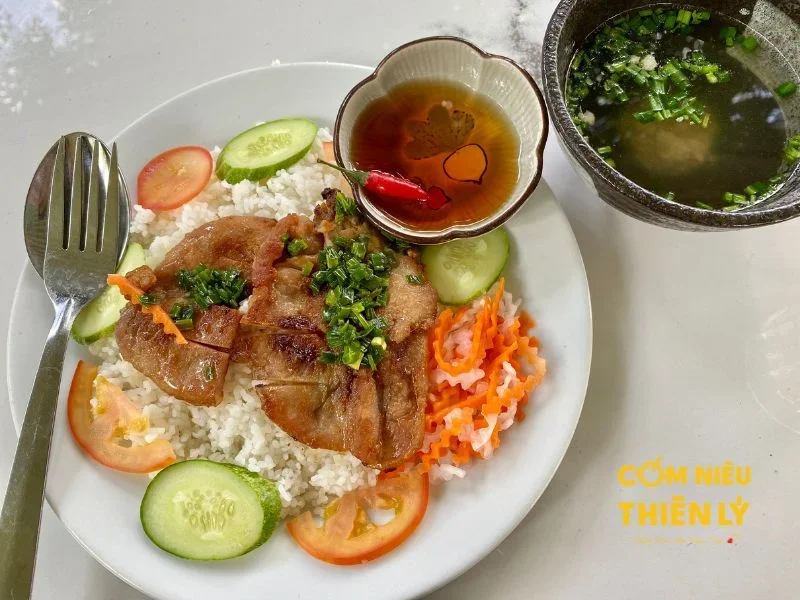 Typically, Com Nieu is served with a variety of side dishes that may include marinated grilled meats, seafood, and a selection of fresh and pickled vegetables. Soy sauce or fish sauce, often mixed with a bit of chili and garlic, is drizzled over to enhance the flavors.