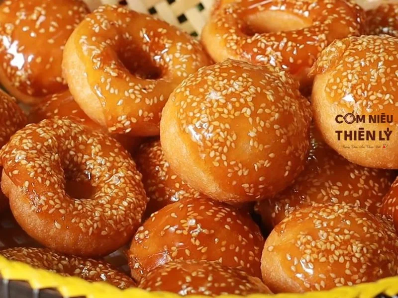 Banh Cam and Banh Ran are crispy sesame balls filled with a sweet mung bean paste. Banh Cam is the Southern version, while Banh Ran is known in the North. They are deep-fried to achieve a golden, crispy exterior while remaining soft and chewy inside.